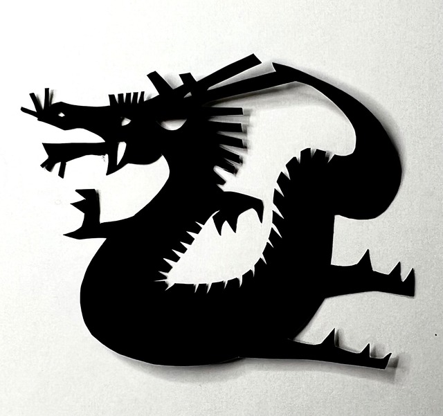 ミニ切り絵1 桐箱入り干支切り絵 「辰」8cm(内寸)