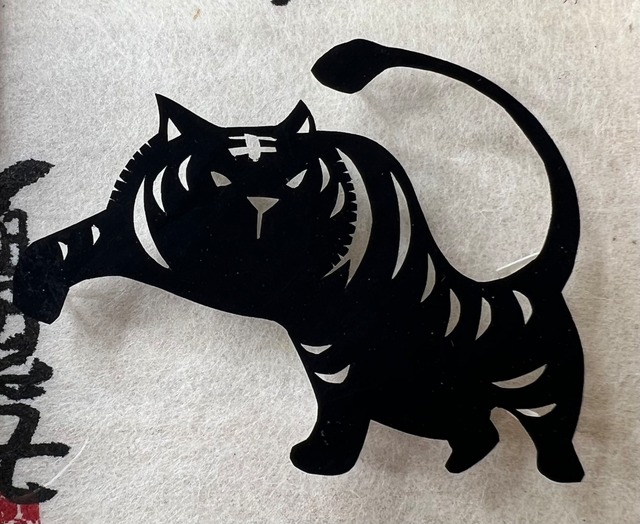 ミニ切り絵7 桐箱入り干支切り絵 「寅」8cm(内寸)
