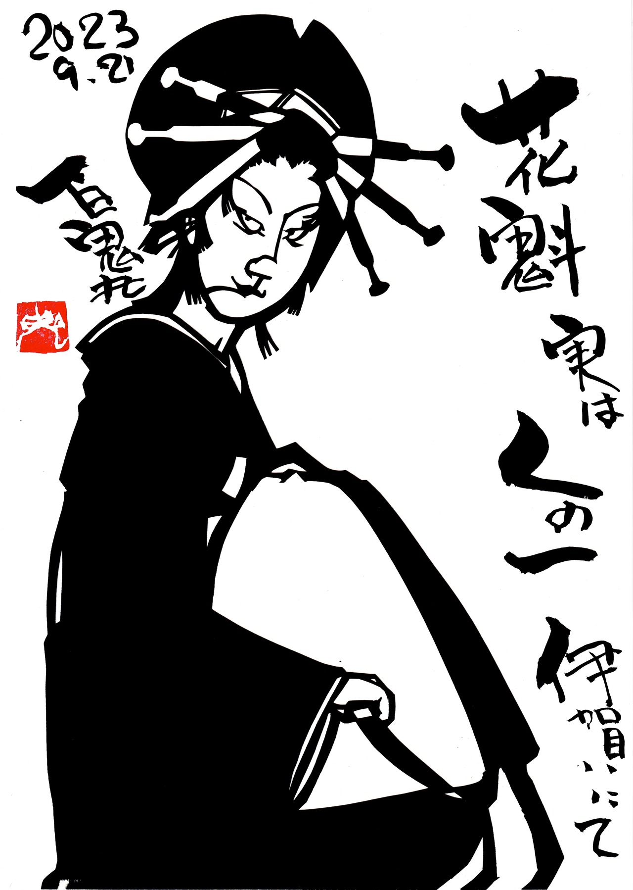花魁実はくノ一 2023.9.21(デモンストレーション切り絵)25分制作下絵制作15分A4サイズ