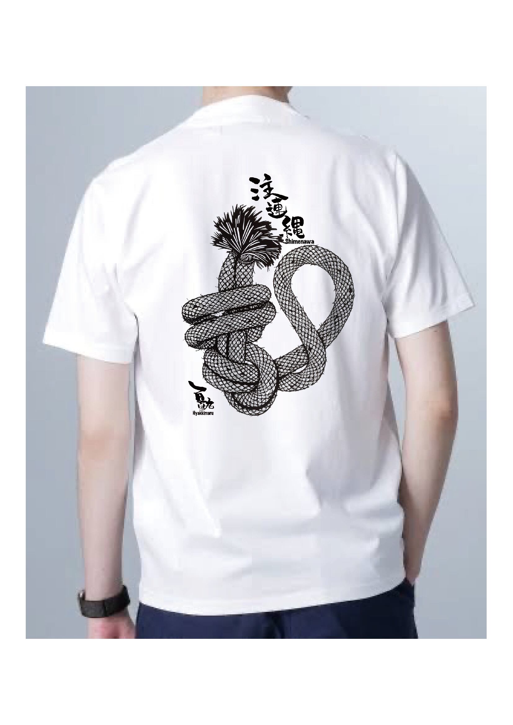 [注連縄」百鬼丸の手刷りTシャツ シルクプリント(バックプリント、前プリントはロゴ)